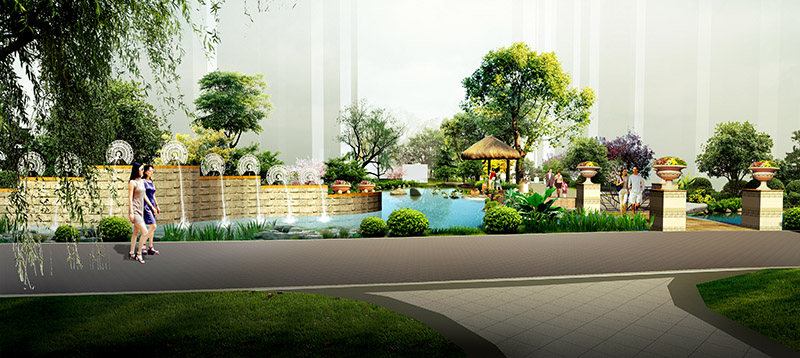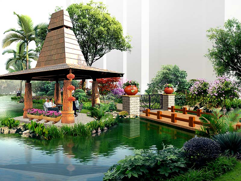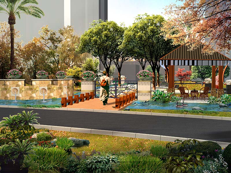 整個園區汲取東南亞風情園林精華,以藝術的手法建造園林,純凈的空氣、養眼的蒼翠,再現東南亞休閑、悠然情調。將景觀與藝術進行最大限度的融合,人