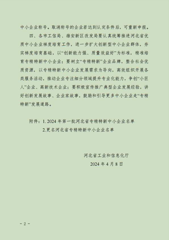 近日,中繹集團榮獲河北省工業和信息化廳授予的“河北省專精特新中小企業”榮譽稱號。